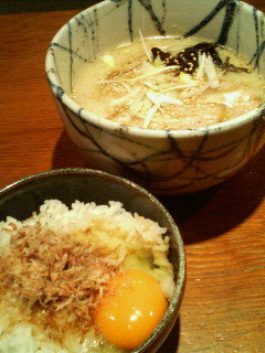 かつおぶしと、あとダシ汁がめちゃくちゃうめーの!味ちょうどいいし!まさに神!