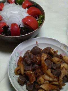 サラダと自作煮物だけ食べて退散してきたゾ!!o(TヘTo) クゥ